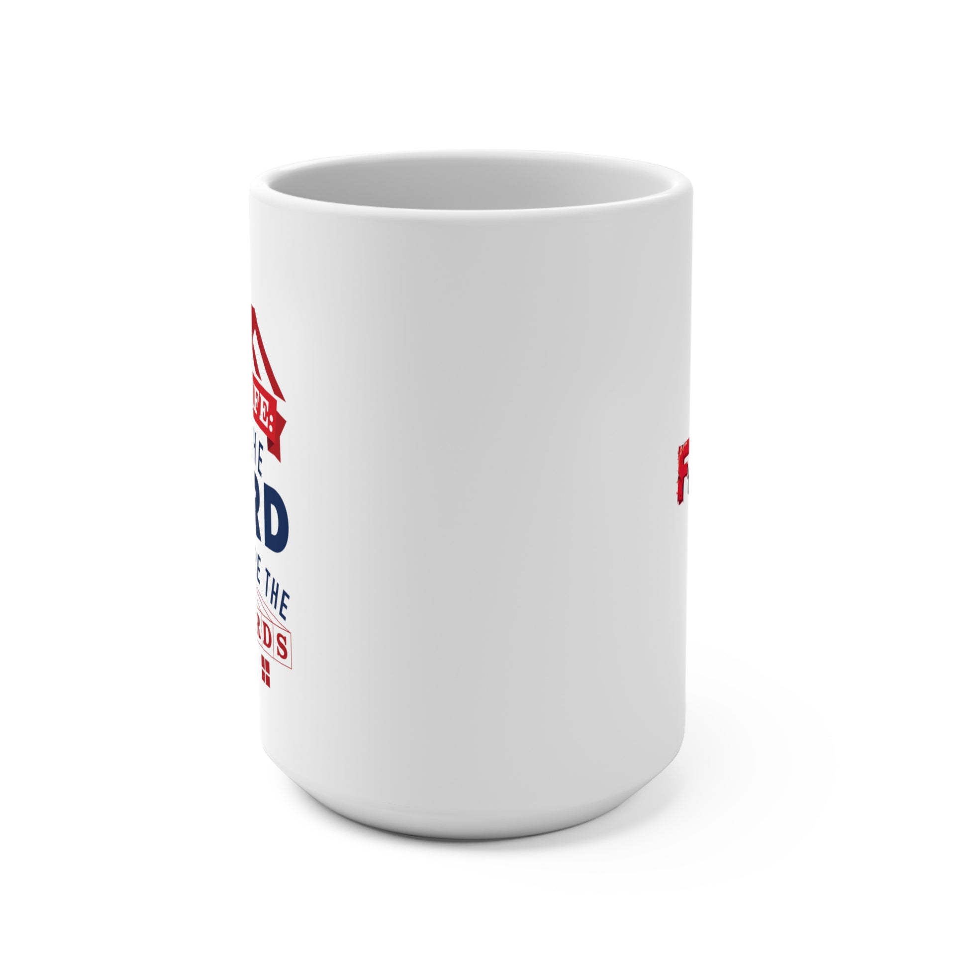 A big size (15oz) white, durable ceramic mug.