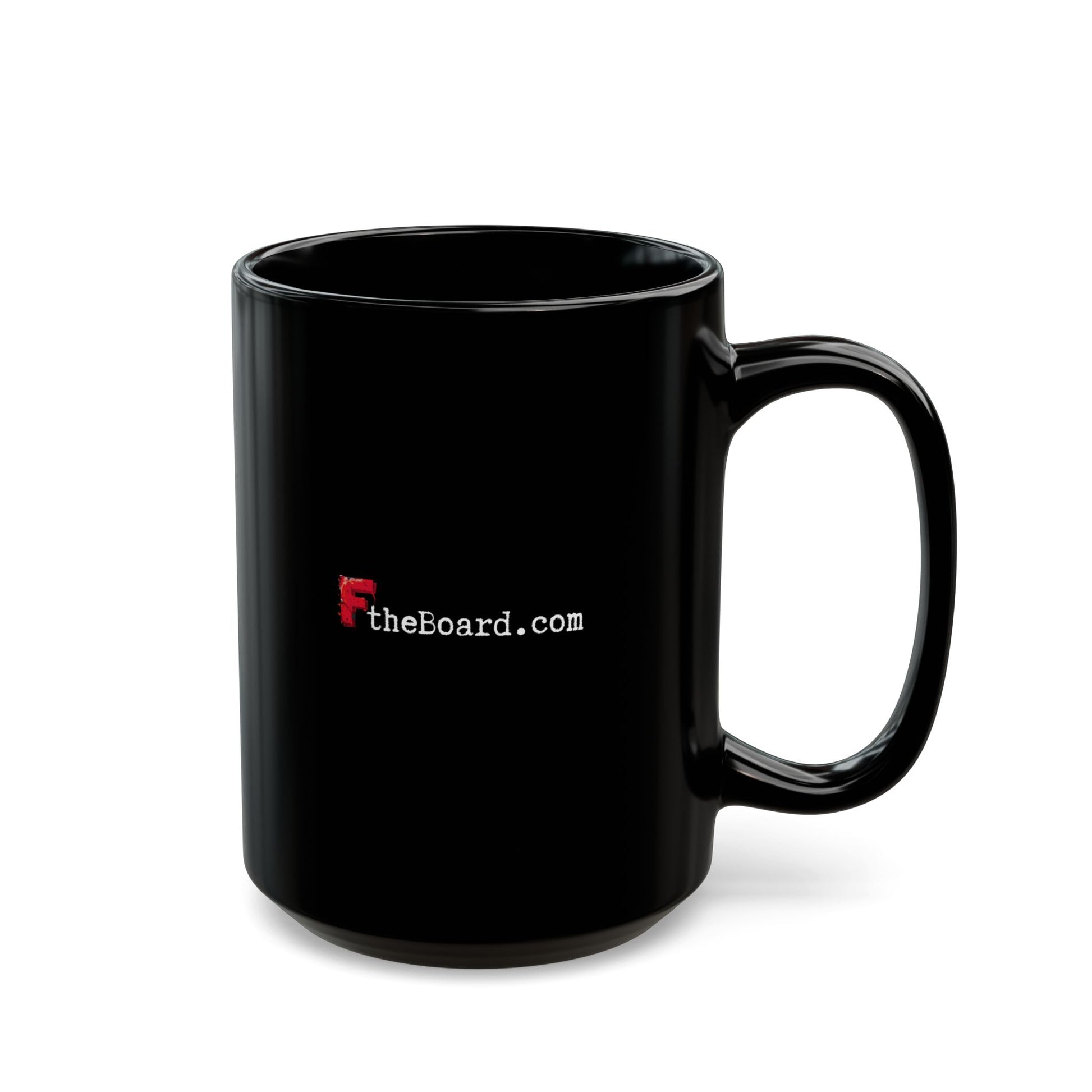 Warm your soul with a nice cuppa joe out of this black ceramic mug, while making a statement your board needs to hear.